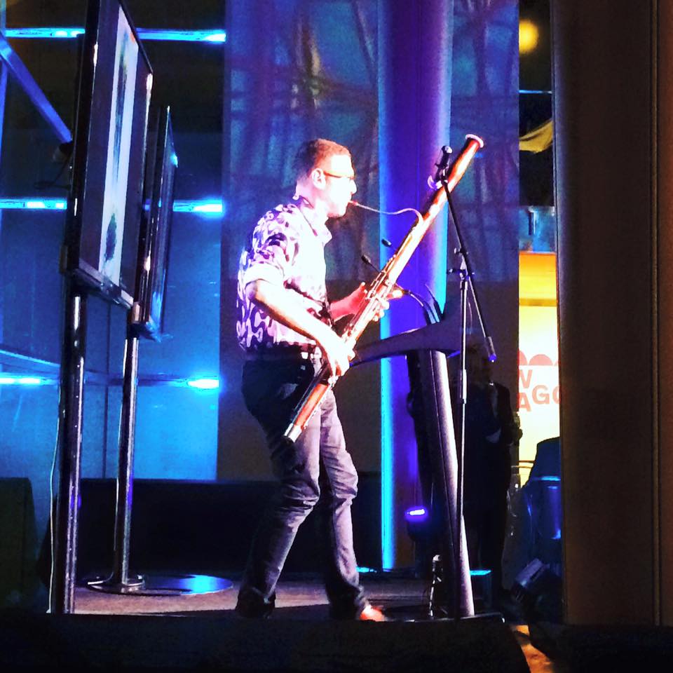 Last night saw Ben Hoadley perform my “the effect of bundled sticks on sound” for bassoon and FX at the Auckland Art Gallery for the launch of the Auckland Art Gallery Foundation – a hugely fun Dada themed multisensory dinner (with food by Peter Gordon). Great to be able to present this piece in such an interesting environment!